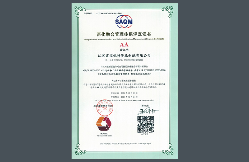 兩化融合管理體系評定證書